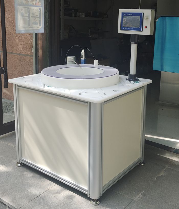 工作腔體可選 300,400 ,600 毫米直徑。 可做多工位 可自動(dòng)滴膠 1-8路 。 可顯影 ,封邊,背洗,清洗,甩干,吹干。